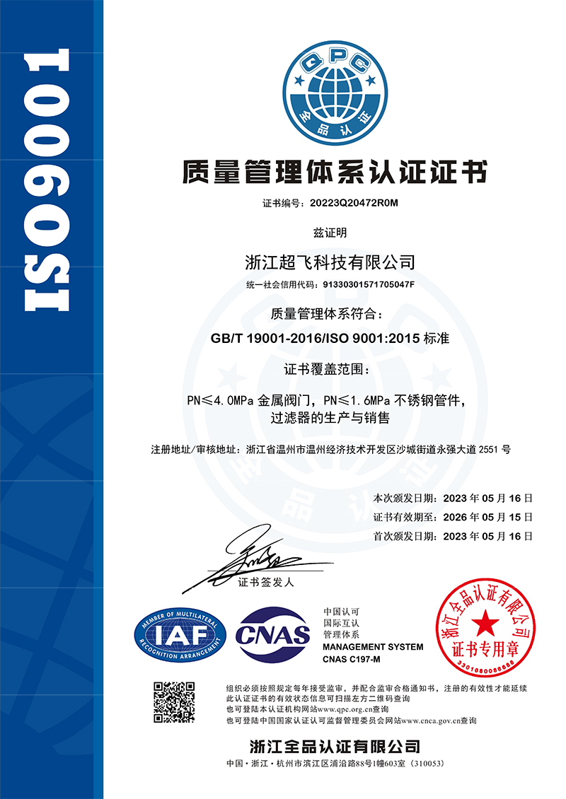 質(zhì)量管理體系認證證書中文Q帶標